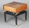 | 391 | G-Plan, a mid-century teak bedside table fitted a drawer, raised on ebonised turned supports 54cm h x 47cm w x 47cm d (contact marks in places) | 30-40 |