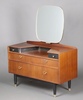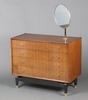 | 392 | G-Plan, a teak mid-century dressing chest with oval plate mirror, fitted 2 glove drawers above 2 long and 1 short drawer, raised on turned ebonised supports 132cm h x 106cm w x 46cm d | 30-50 |
