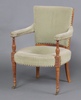 | 401 | An Edwardian beech framed open arm chair, the seat and back upholstered in green material, raised on turned supports | 40-50 |