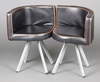 | 402 | A pair of stylish chrome and black rexine chairs 69cm h x 60cm w x 39cm d | 30-40 |