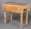 | 409 | A 19th Century pine drop flap table, raised on turned supports 74cm h x 82cm w x 45cm d | 40-60 |