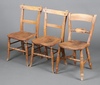 | 410 | A 19th Century elm and beech bar back Windsor chair with shaped mid rails, raised on turned supports with H framed stretcher 82cm h x 47cm w x 38cm d together with a pair of Continental elm and beech ladder back chairs | 30-40 |