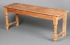 | 411 | A 19th Century rectangular pine side table, raised on turned supports 59cm h x 150cm w x 46cm d (water and contact marks in places) | 50-75 |