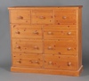 | 437 | A pine chest of 3 short and 6 long drawers with turned handles 122cm h x 132cm w x 41cm d | 40-60 |