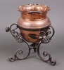 | 443 | An Arts and Crafts embossed copper jardiniere raised on a wrought iron stand 30cm h x 21cm diam. | 40-50 |