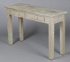 | 454 | An Indian 20th Century rectangular embossed metal rectangular side table fitted 2 drawers, raised on square supports 75cm h x 115cm w x 40cm d | 40-60 |