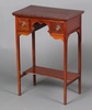 | 475 | An Edwardian rectangular crossbanded mahogany side table fitted 2 drawers, raised on square tapered supports with undertier 72cm h x 50cm w x 32cm d | 30-40 |