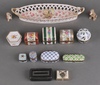 | 556 | A pierced porcelain 2 handled dish and a small collection of boxes with metal mounts | 20-30 |