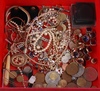 | 583 | A quantity of vintage costume jewellery and coins | 20-30 |