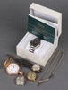 | 637 | A gentleman's Klaus-Kobec 2 colour wristwatch together with other wristwatches and pocket watches and a small quantity of coins | 30-40 |