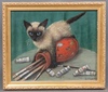 | 693 | C A Rohn, oil on board signed, study of a Siamese kitten with a spilt paint pot 27cm x 32cm | 30-40 |