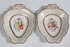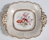 A 19th Century Rockingham style 21 piece floral patterned fruit service with gilt banding comprising 2 square dishes (both cracked), 3 heart shaped dishes (2 cracked), oval dish (cracked), 15 plates (1 cracked) 1/335