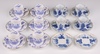 | 724 | A Royal Worcester 12 piece blue glazed coffee service decorated dragons, with blue Worcester mark, comprising 6 coffee cans (5 a/f) and 6 saucers (2 a/f) and a 10 pieces Louis Philipp coffee set decorated windmills - 4 cups (1 a/f, 1 chipped), 6 saucers (2 with slight chips) | 20-30 |