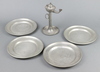 | 736 | Five 18th Century Continental pewter plates 22cm with contact marks together with 2 19th Century pewter whale oil lamps 19cm x 12cm | 20-30 |