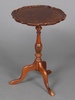 | 89 | A Georgian style circular mahogany wine table with pie crust edge, raised on a pillar and tripod base 50cm h x 35cm diam. | 30-40 |