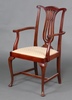 | 105 | A 1930's Chippendale style mahogany open arm chair with upholstered drop in seat, raised on cabriole supports 103cm h | 30-40 |
