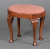 | 106 | A Georgian style oval mahogany stool with drop in seat, raised on cabriole supports 45cm h x 52cm w x 36cm d | 60-80 |