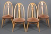 | 110 | Ercol, a set of 4 Ercol swan back beech and elm dining chairs, raised on turned supports with H framed stretchers 100cm h x 46cm w x 45cm d (contact marks in places) | 60-80 |