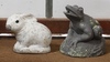 | 118 | A grey painted concrete garden fountain in the form of a toad 45cm h x 19cm, 1 other of a rabbit 20cm x 23cm | 30-40 |