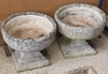 | 124 | A pair of circular well weathered concrete garden planters raised on associated square bases 41cm h x 48cm diam. (chips to bases) | 40-60 |