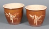 | 125 | A pair of circular brown glazed terracotta plant pots decorated bamboo 32cm h x 37cm diam. (1 chipped) | 20-30 |