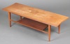 | 154 | A mid-century teak rectangular 2 tier coffee table on outswept supports 120cm w x 40cm d | 30-50 |