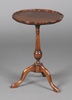 | 160 | A circular Georgian style mahogany wine table with pie crust edge raised on pillar and tripod base 53cm h x 37cm diam. | 30-30 |
