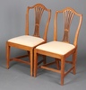 | 167 | A pair of 19th Century bleached oak Hepplewhite style dining chairs with upholstered drop in seats, on square supports 95cm h x 48cm w x 42cm d (signs of old but treated worm) | 30-40 |