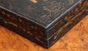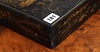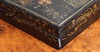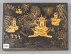 A Chinese rectangular black and gilt lacquered shallow box the lid decorated pagodas 7cm x 35cm x 25cm