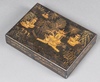 | 181 | A Chinese rectangular black and gilt lacquered shallow box the lid decorated pagodas 7cm x 35cm x 25cm | 25-35 |