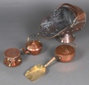 | 206 | A Victorian copper helmet shaped coal scuttle, ditto kettle and stand and a twin handled bowl | 30-40 |