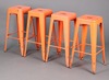 | 239 | Four orange painted pressed metal stacking stools 77cm h x 30cm w x 30cm d | 30-40 |