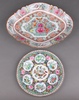 | 388 | A 20th Century Cantonese dish with floral and butterfly decoration 6.5cm h x 35cm w, together with a 20th Century Cantonese plate 23cm diam. | 30-40 |