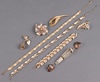 | 400 | A Sphinx gilt ribbon brooch, a Trifari gilt metal brooch, an Exquisite gilt metal brooch and a collection of gilt metal costume jewellery | 30-40 |