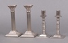 | 60 | A pair of reeded silver plated candlesticks with Corinthian capitals 20cm and a pair of polished metal candlesticks 17cm | 30-40 |