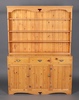 | 63 | A pine dresser, the raised back fitted 4 shelves, the base fitted 3 drawers above triple cupboards 187cm h x 135cm w x 42cm d | 30-40 |
