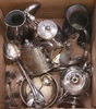 | 65 | An oval Britannia metal teapot, a ditto coffee pot, silver plated jug and sauce boat, 2 ladles and other plated items | 30-40 |