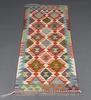 114 A white, green and terracotta ground Chobi Kilim runner with diamond design to the centre 196cm x 72cm 50-60