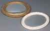 110 A circular convex plate wall mirror contained in a decorative gilt plaster frame 60cm, and an oval ditto in a white and gilt frame 54cm x 44cm 20-30