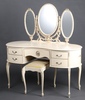 126 A Louis style kidney shaped dressing table with triple plate mirror, the base fitted 1 long and 4 short drawers, raised on cabriole supports 140cm h x 133cm w x 45cm d, together with a matching stool and a slat back chair 20-30