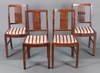 | 153 | A set of 4 1930's Art Deco oak slat back dining chairs with upholstered drop in seats 89cm h | 30-40 |