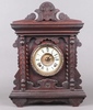 161 Ansonia, an American 8 day shelf clock with 12cm dial contained in a carved beech case, 17cm h x 35cm w x 12 cm d 20-30
