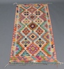 181 A white, green and tan ground Chobi Kilim runner 161cm x 72cm with all over geometric design 40-50