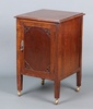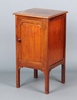 | 125 | An Edwardian mahogany bedside cabinet enclosed by a panelled door, raised on square tapered supports 71h x 38w x 37d | 20-30 |