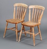 | 114 | A pair of 19th Century bleached beech stick and rail back Windsor kitchen chairs on turned supports with H framed stretcher 84h x 36w x 38d | 30-40 |
