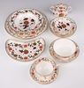 | 260 | Fourteen pieces of Royal Crown Derby Imari pattern style tea/dinner ware comprising 2 plates (1 second), side plate, soup bowl, 2 tea plates, 2 saucers, bowl, tea cup, small bowl, twin handled soup cup, lidded sugar bowl and a crescent shaped salad plate A962 XXXIVIII | 20-30 |