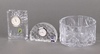 | 268 | A Waterford Crystal glass bottle cooler 9cm, a timepiece 11cm, ditto 7cm | 20-30 |