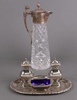 | 280 | A silver plated mounted moulded glass ewer, a 3 piece condiment and tray | 20-30 |