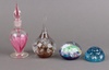 | 282 | A Studio Glass pink and clear scent bottle 20cm and 3 paperweights | 30-40 |
