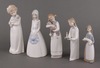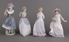 | 297 | Three Lladro figures - girl holding a lamb 22cm, girl holding a candle 19cm, girl holding a piglet 17cm and 2 other porcelain figures | 30-40 |
